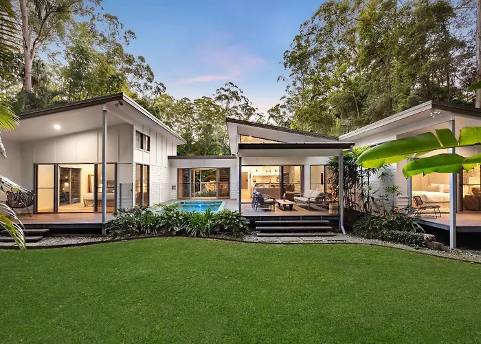 Located 4.8 km from Noosa Horse Riding, Bundaleer Rainforest Trio A Luxe Wellness Retreat Doonan villa features a private swimming pool, a sauna, ensuring a relaxing stay. Featuring access to a patio, the accommodation is located within 15 minutes' drive of the Original Eumundi Markets.